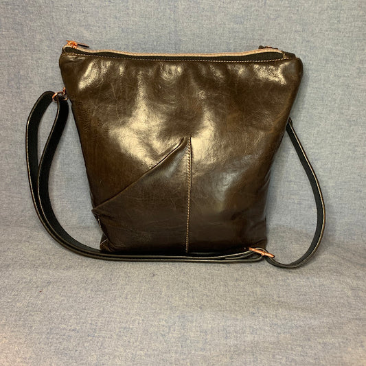 Beautiful high quality black leather bag with adjustable crossbody strap