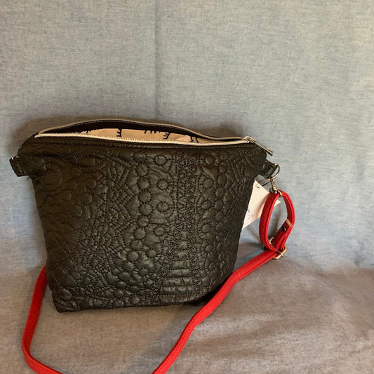 Both attractive and practical , this designer vinyl crossbody will take you anywhere.