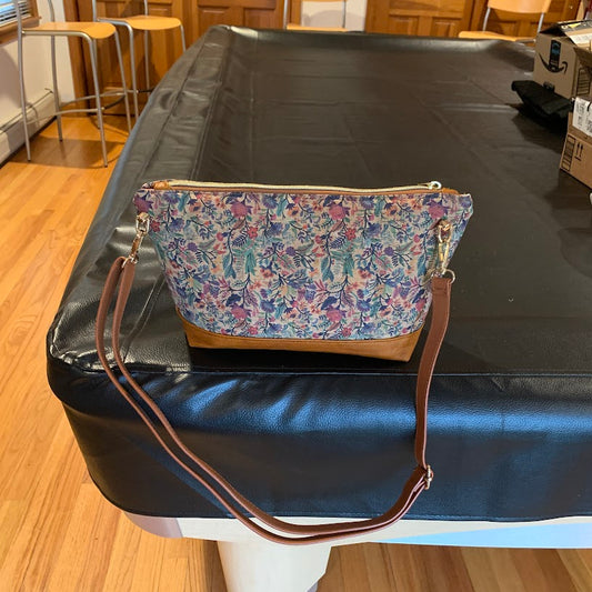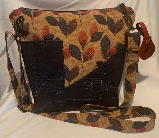 Cork crossbody with flap closure, exterior slip pocket, and fully lined