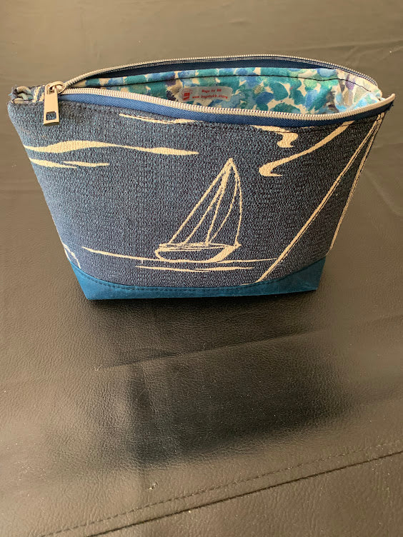Ship Ahoy pouch with waxed canvas trim and home decor body.